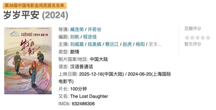 去年上海国际电影节亚新奖的片子,刘威葳和段奥娟共同出演,也是那种小艺术片,而且还是全艺联专线放映,估计也没太多人能看到,感兴趣的朋友,自己关注下吧。