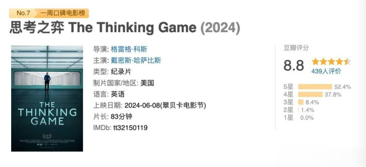 同时,一周豆瓣口碑榜也是可以了解下的。我们一起来看,这一周,又有哪些新的影片上榜吧,虽然,也不是很多。